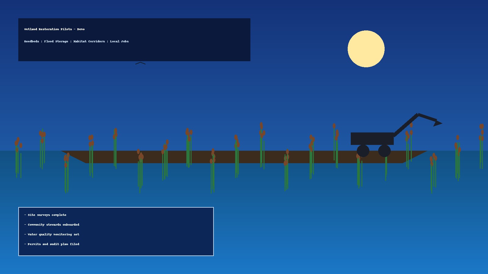 Local cooperatives will steward each site under five-year agreements, with training on water-quality sampling, invasive-species control, and seasonal burn policy. Monitoring data—turbidity, dissolved oxygen, macroinvertebrate counts—will be published monthly on the open portal alongside satellite-derived vegetation indices.
